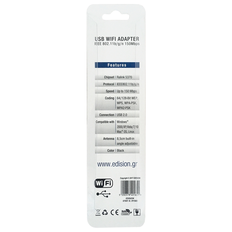 Αντάπτορας USB ασύρματου δικτύου 150 MBPS WiFi EDI-Mega: