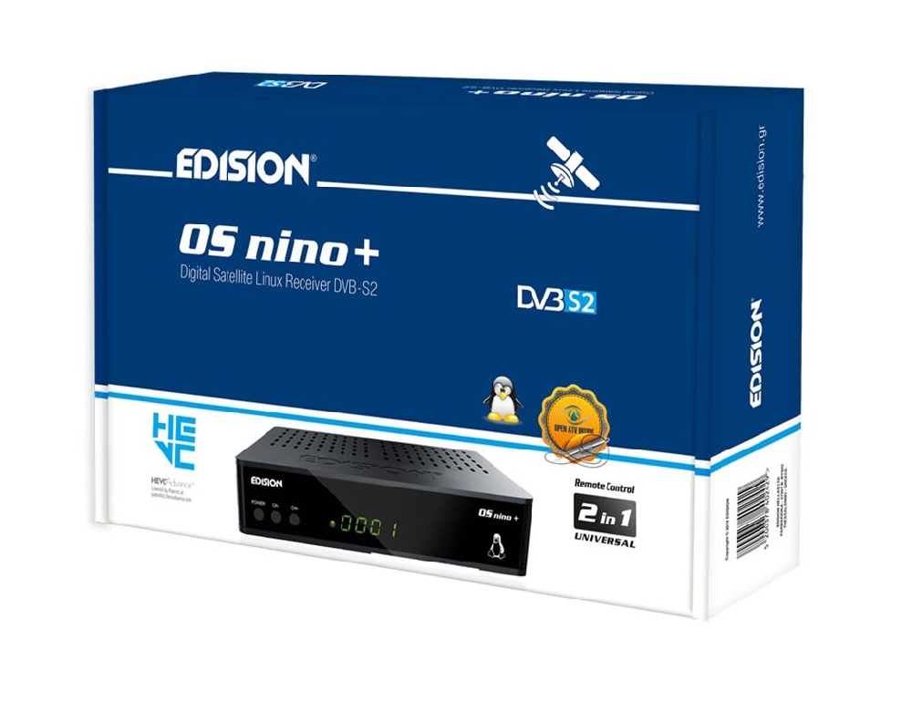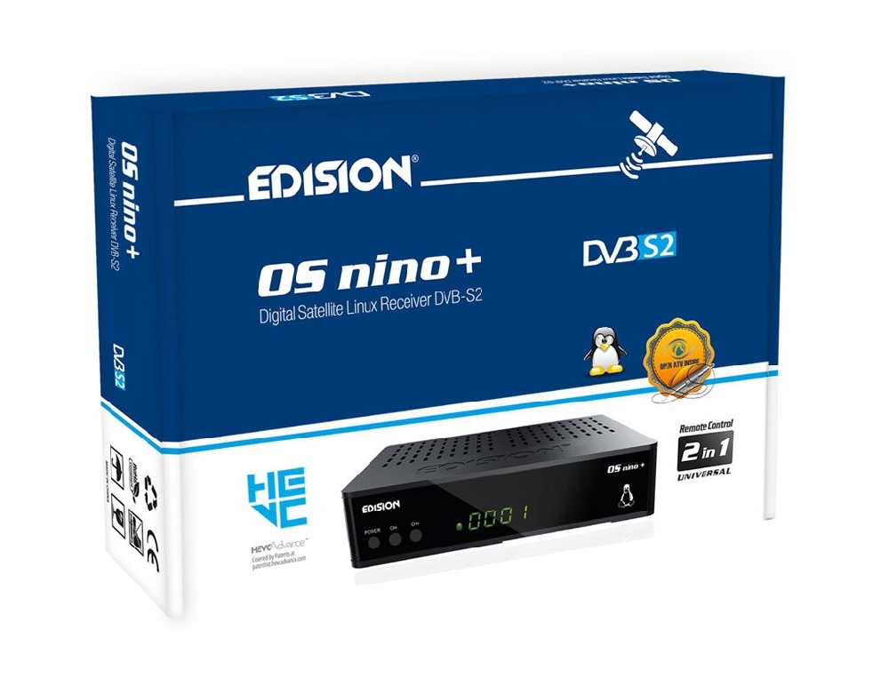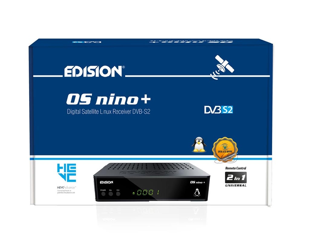 The OS NINO+ DVB-S2 E2 LINUX Full High Definition receiver with H.265/HEVC decoding support, is the new member in the E2 LINUX series receivers from EDISION. It combines all the updated technical features to provide you with enjoyable use of all its advanced specifications, in an incredibly compact size. Some of its features include: E2 Linux operational system, BROADCOM MIPS Dual Core @ 742MHz processor, 512MB SLC NAND Flash / 512MB DDR3 memory, Full Media Player along with the ergonomical and multifunctional IR remote control EDI-RCU OS 2-in-1! All these, plus the all-around EDISION quality and support included!